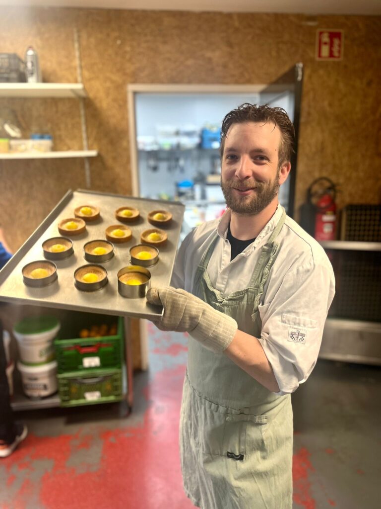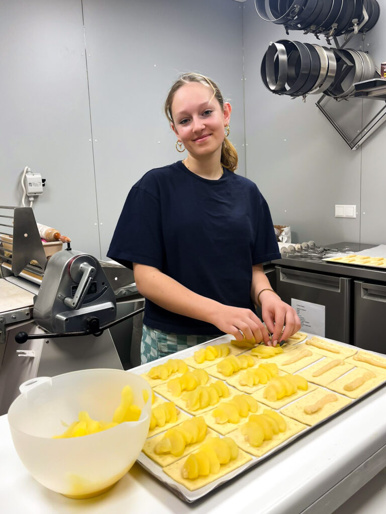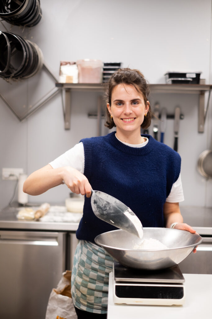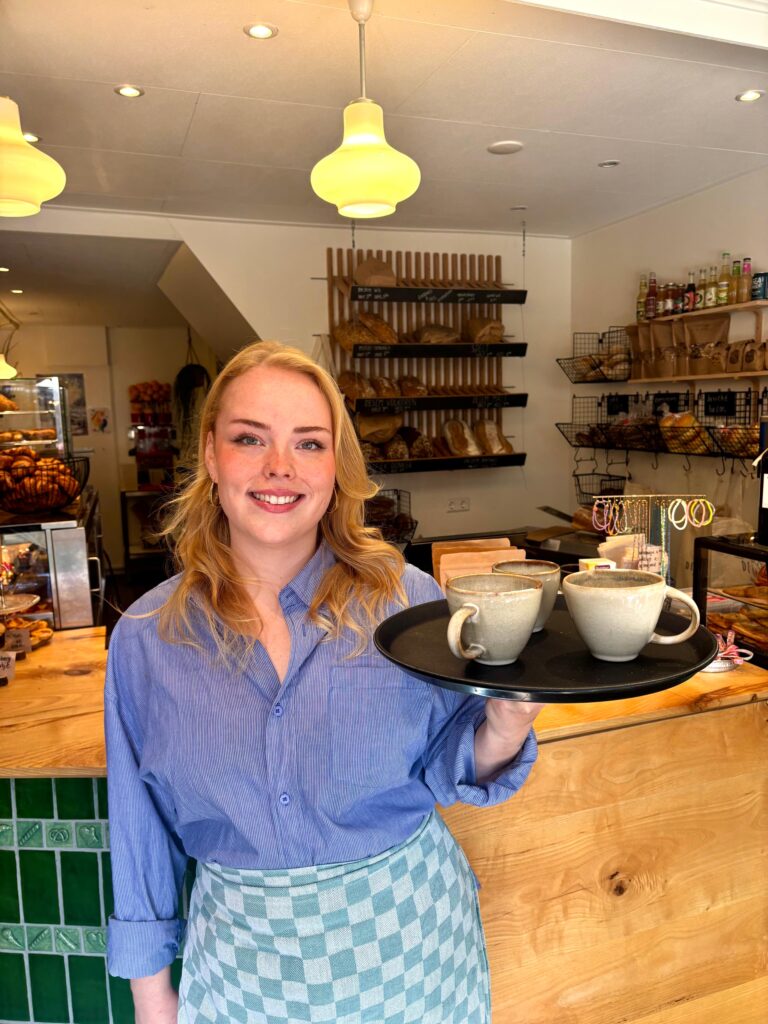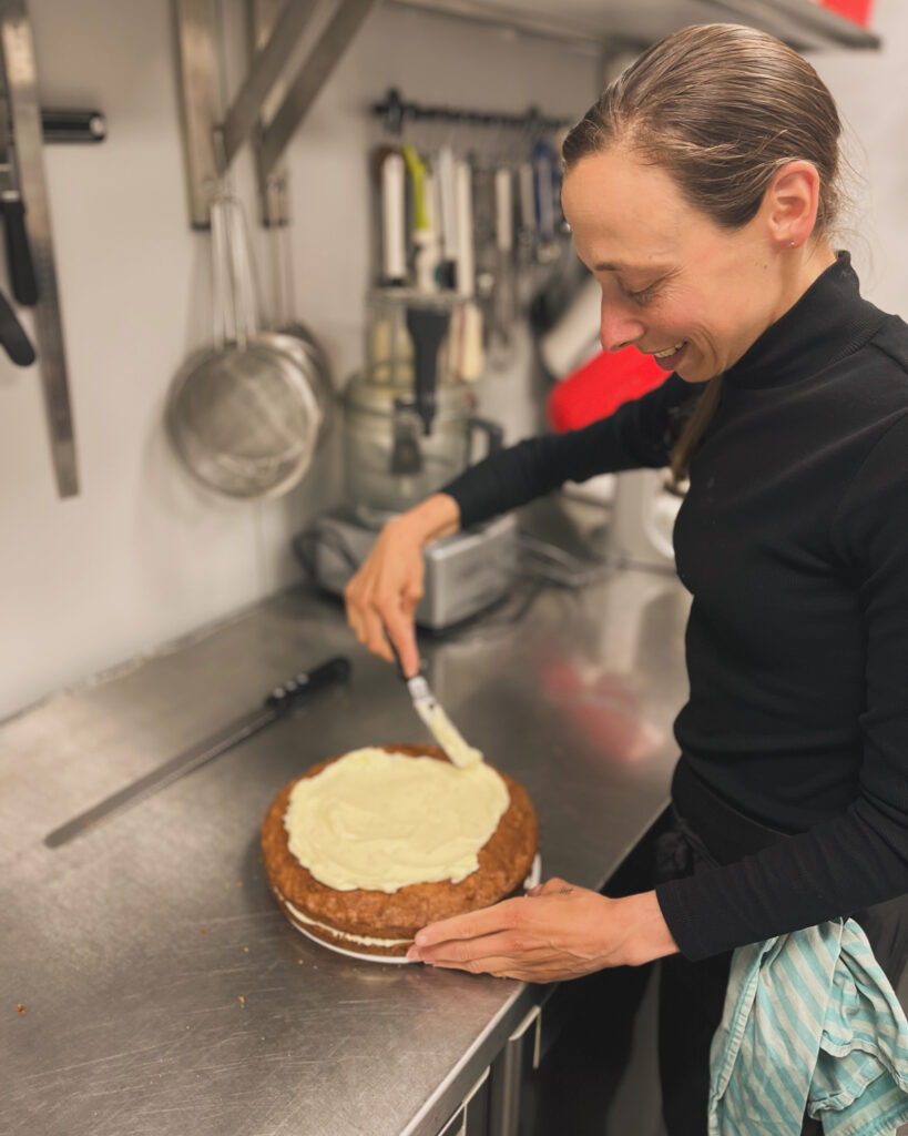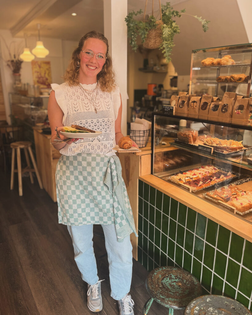 ‘Toen Bodil met het idee kwam was mijn eerste reactie: dit is wat ik altijd al wilde, maar ook vond ik het natuurlijk super spannend. We hebben uiteindelijk de stoute schoenen aangetrokken en zijn het gewoon gaan doen. Tijdens de verbouwing hebben we ervoor gezorgd dat mijn bakkerij als eerste af was, zodat ik aan het einde van de verbouwing al taarten stond te bakken om te ontwikkelen en te proeven in mijn eigen, afgesloten ruimte.