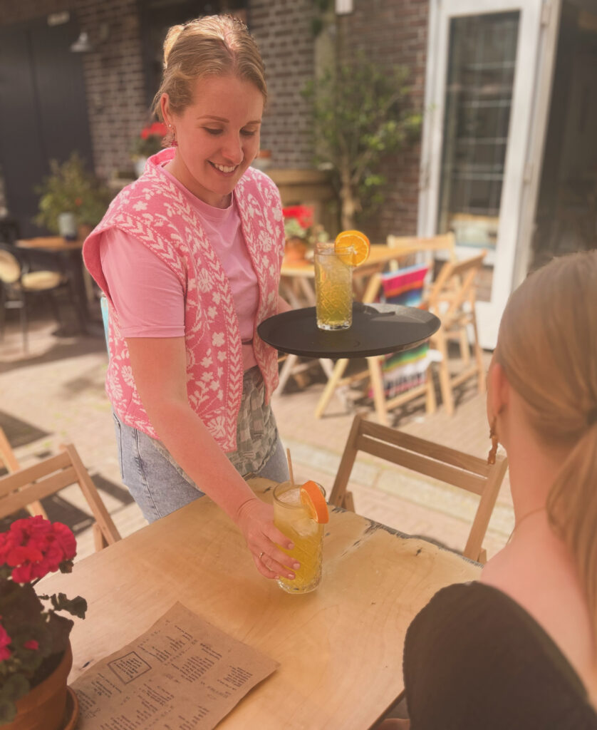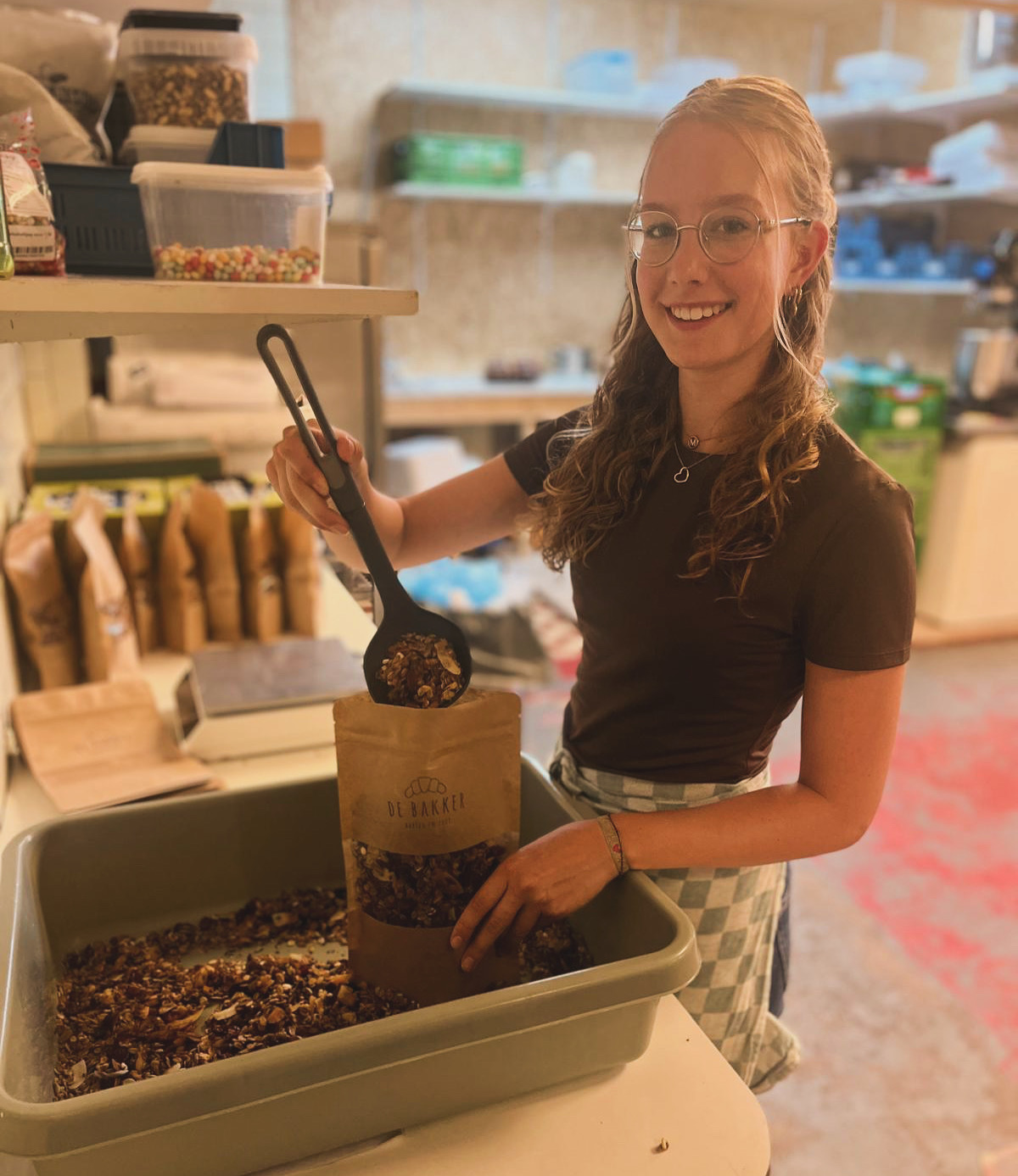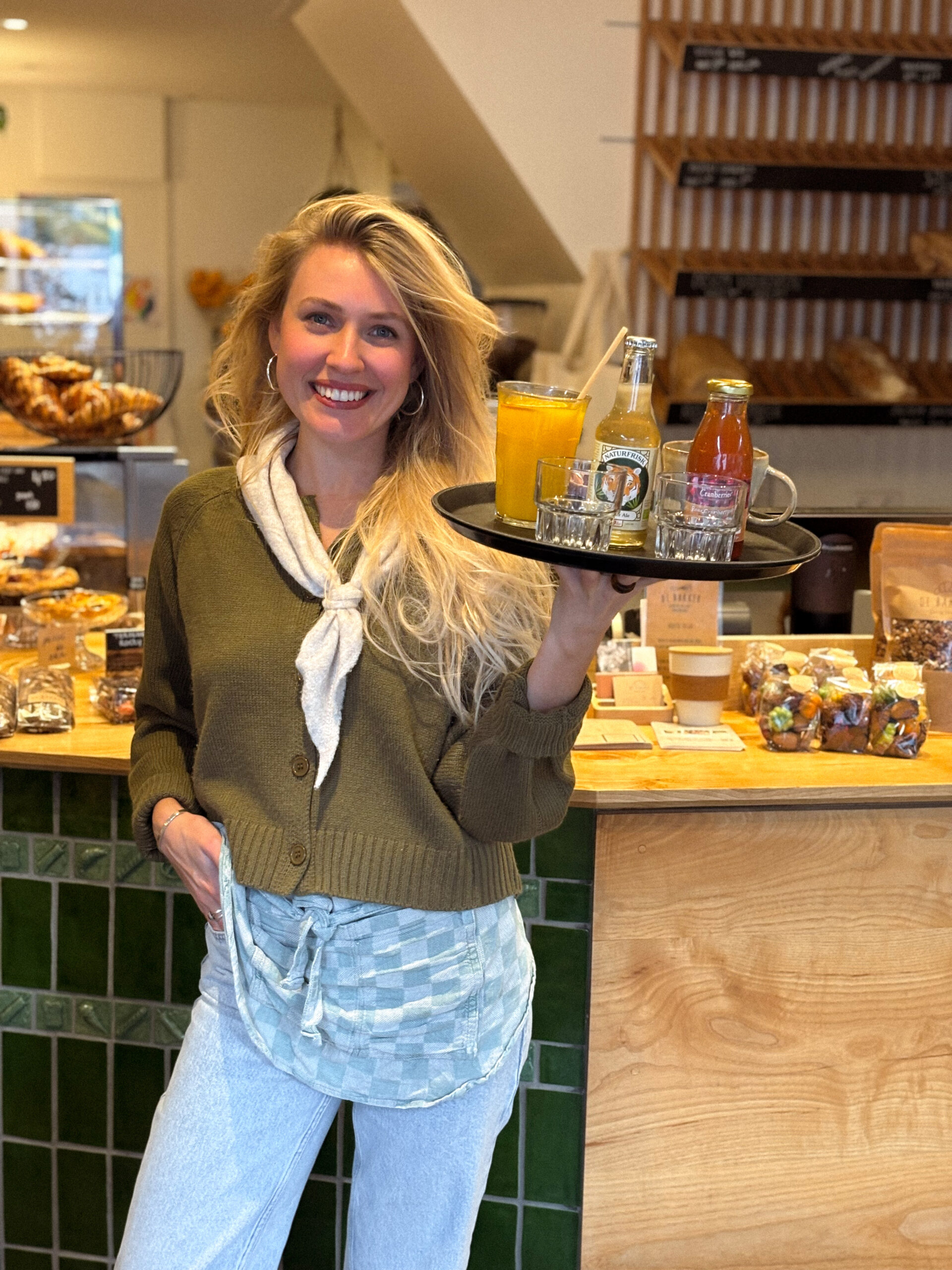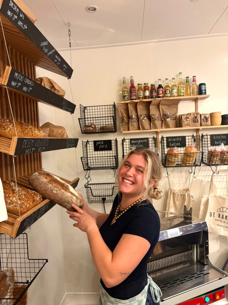 ‘Tijdens de rustige periodes van de lockdown fantaseerden we over iets beginnen voor onszelf. Toen dit pand in de Oosterburen ter beschikking kwam, dacht ik, Bodil, direct aan Sacha. Het pand was vroeger de bakkerij van Midsland, Bakkerij Bos. Ik haalde hier als klein meisje ook altijd ons brood. Maar omdat mijn hart toch (ook) bij de horeca ligt, wilde ik niet alleen een winkel beginnen. En zo ontstond het idee van de Bakker: een winkel en broodjeszaak in één. Op 1 februari 2023 zijn we begonnen met de verbouwing. We kregen veel hulp van vrienden en familie waardoor we al op 1 april open konden. Onze dromen zijn samengekomen en zie hier, De Bakker’